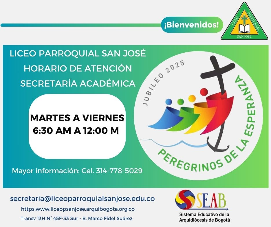 HORARIOS DE ATENCIÓN DE SECRETARÍA ACADÉMICA 26 de Noviembre de 2025 ¡Estamos para servirle!Consulte nuestro horario oficial de atención de la Secretaría Académica para gestionar sus trámites con eficiencia y sin contratiempos. Like 0 Dislike 0 Otros artículosPÓLIZA ESTUDIANTIL 20254 de Diciembre de 2025Conozca el respaldo que ofrece la institución. La Póliza de Seguro Estudiantil CONVENIO SENA27 de Noviembre de 2025Toda la información sobre el Convenio SENA está disponible aquí.