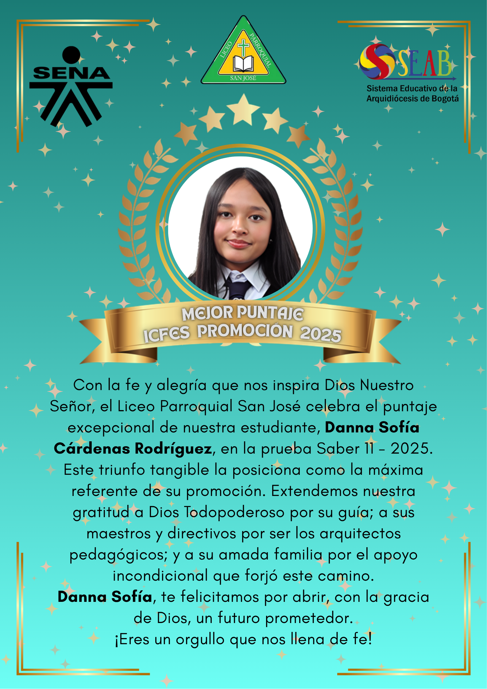 NoticiasMEJOR ICFES 202527 de Noviembre de 2025Celebramos la Excelencia Académica. Felicitamos a nuestro estudiante con el Puntaje ICFES más alto, un testimonio de disciplina y el compromiso de toda nuestra comunidad. Like 0 Dislike 0